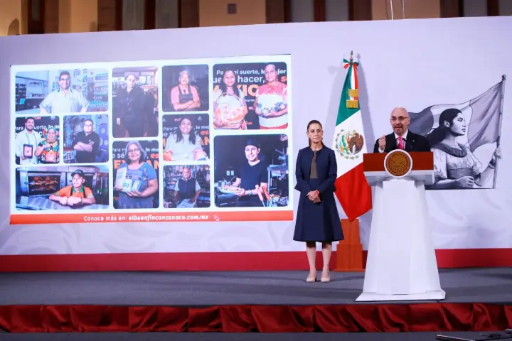 Durante la Mañanera del Pueblo, encabezada por la presidenta Claudia Sheinbaum Pardo, el presidente de Concanaco Servytur México, Octavio de la Torre de Stéffano, presentó los detalles de la edición 2025 de El Buen Fin, que cumple 15 años de impulsar el consumo interno y la formalidad económica.