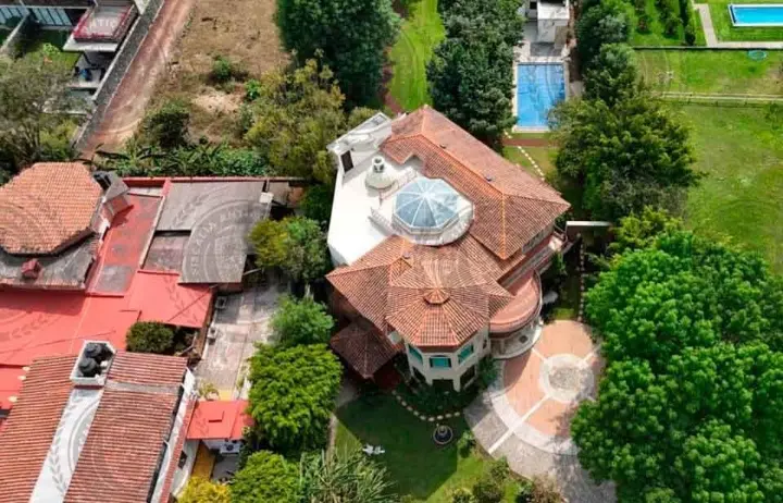 El inmueble, identificado como Hacienda de Lujo, se extiende sobre un terreno de 5,277 metros cuadrados y cuenta con múltiples residencias, oficinas privadas, piscina, canchas de tenis, biblioteca y diversas amenidades de alto nivel.