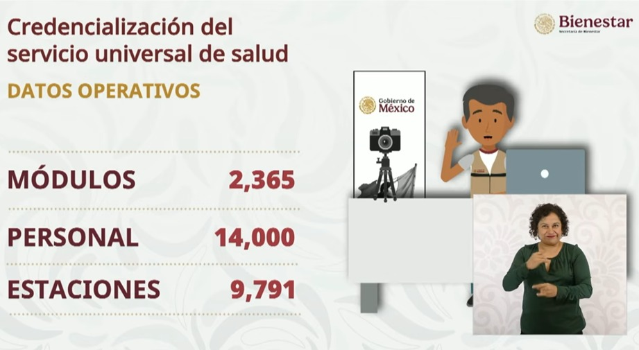 Montiel detalló que toda la población del país deberá registrarse para obtener la Credencial del Servicio Universal de Salud. La meta es alcanzar a 134 millones 407 mil 258 personas, para lo cual se instalarán 2 mil 365 módulos y 9 mil 791 estaciones de atención presencial en todo el territorio nacional.