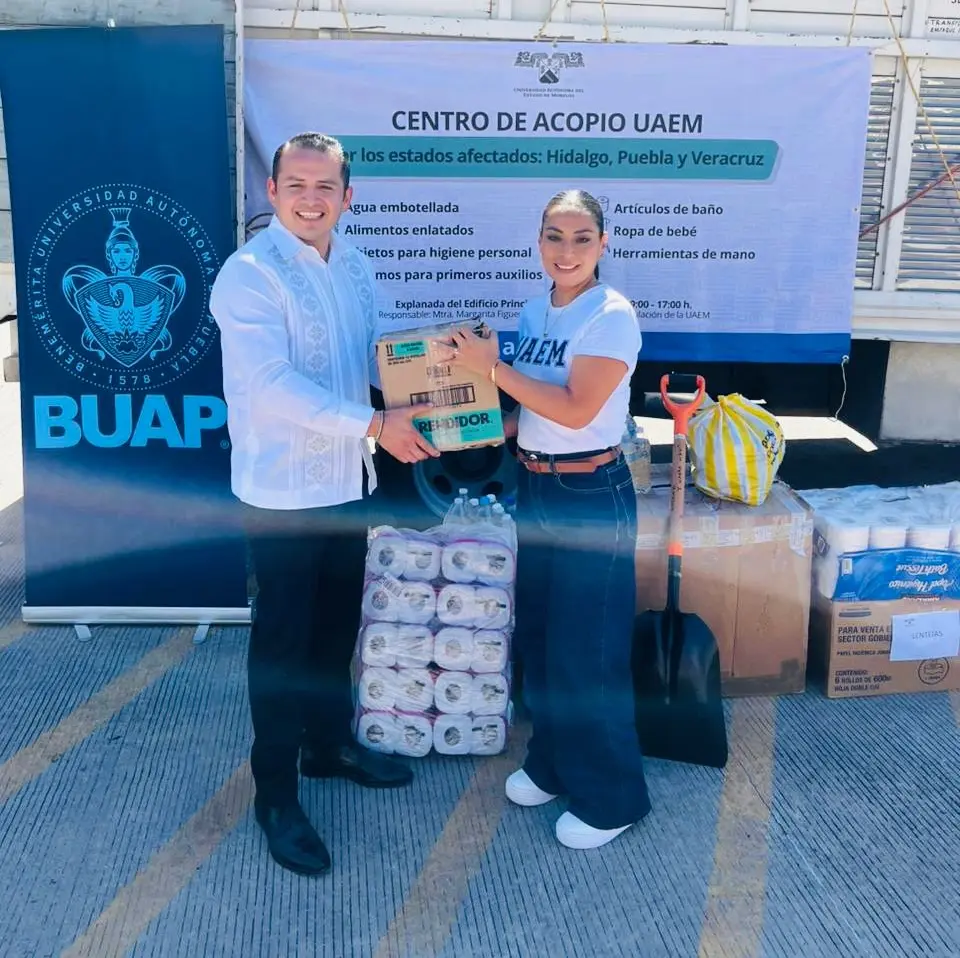 En un acto de solidaridad de la comunidad universitaria, la Universidad Autónoma del Estado de Morelos (UAEM), entregó dos toneladas de víveres a la Benemérita Universidad Autónoma de Puebla (BUAP), en apoyo a las comunidades afectadas por las recientes lluvias.