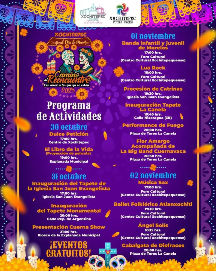“En Xochitepec honramos a quienes partieron con amor, cultura y tradición”, expresó el edil, quien invitó a turistas y locales a disfrutar de este festival en el corazón del Pueblo Mágico.
