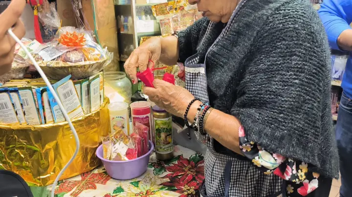 La señora Guadalupe Rojas Rico, comerciante del mercado Adolfo López Mateos, informó que en el último día del año la ciudadanía realiza diversos rituales con el objetivo de cerrar el 2025 de manera positiva y atraer buenas energías para el 2026, el cual se denomina Año del Caballo de Fuego en su forma Yang.