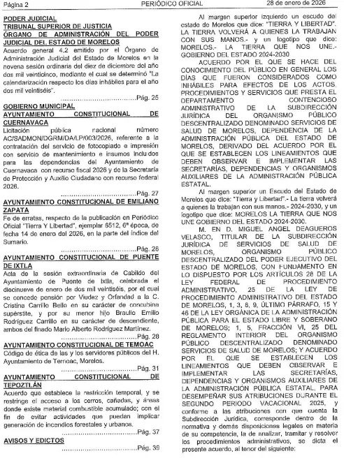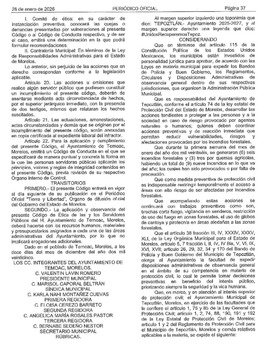 El acuerdo está publicado en el periódico oficial del estado de Morelos "Tierra y Libertad", por lo que el Ayuntamiento de Tepoztlán exhorta a la ciudadanía a respetar la restricción sobre todo de cara al Carnaval que se llevará a cabo los días 15, 16 y 17 de febrero.