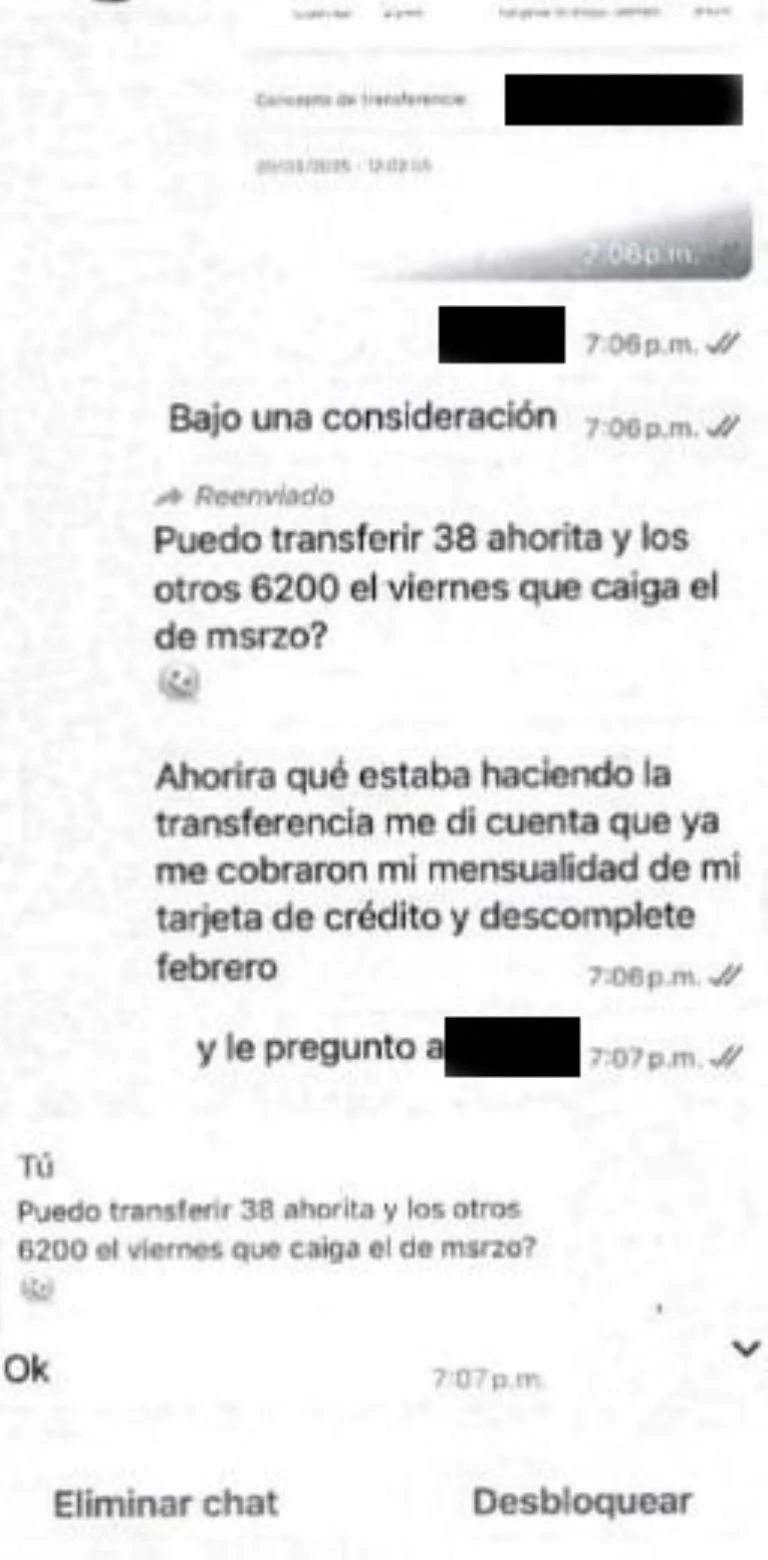 La documentación difundida incluye capturas de mensajes de WhatsApp y comprobantes de transferencias por montos que, en algunos casos, alcanzaban los 38 mil pesos. Los trabajadores señalaron que quienes se negaban a entregar dinero eran amenazados con la baja laboral o con la negativa de contratación. También afirmaron que las solicitudes de depósito se realizaban desde oficinas administrativas y que en algunos casos se pedía realizar los pagos mediante intermediarios.