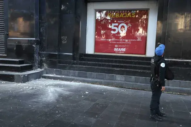Además, se registraron los siguiente incidentes: Avenida Juárez, un fragmento de mampostería del edificio de Sears se desprendió y cayó al suelo, generando alarma entre peatones. El área fue asegurada por autoridades para evitar riesgos adicionales, sin que se reportaran personas lesionadas.