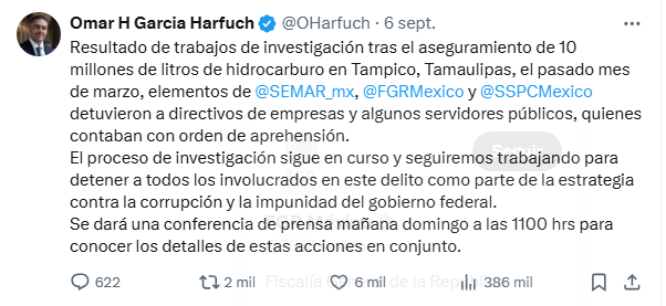 El caso se destapó a raíz del aseguramiento, en marzo de 2025, de un buque con 10 millones de litros de diésel, además de 200 contenedores y 23 tractocamiones en Tampico y Altamira, Tamaulipas.